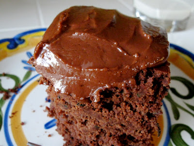 Then, lastly, frost your cake and eat it with joy! No dairy, no gluten, and no eggs! Gluten-free vegan goodness. I think this recipe would make a yummy cupcake as well....maybe next time I make it I will do that to see how fun a zucchini chocolate cupcake will have.